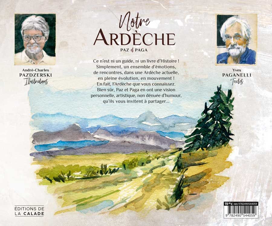 Une vision de l’Ardèche actuelle par deux amoureux de leur région : Paga nous délivre des textes poétiques, humoristiques et parfois sarcastiques magnifiquement illustrés par les aquarelles de Paz.