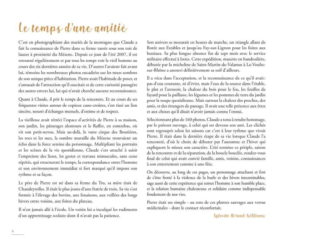 Avec à nouveau la complicité des textes de Sylvette Béraud-Williams, les images rythment les saisons et disent cette relation privilégiée qui s'est tissée entre les deux hommes, à coup de casses-croûtes et d"écoute mutuelle.