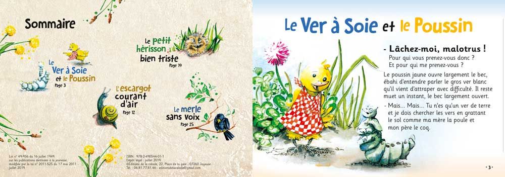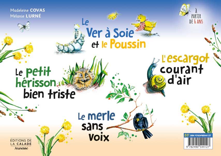 4 contes à découvrir : Le ver à soie et le poussin - L’escargot courant d’air - Le petit hérisson bien triste - Le merle sans voix